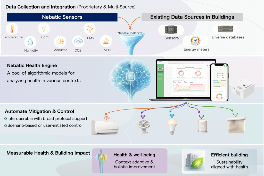 Nebatic transforms the way indoor environments actively support people’s health and well-being, while enabling buildings to be operated sustainably at the same time.